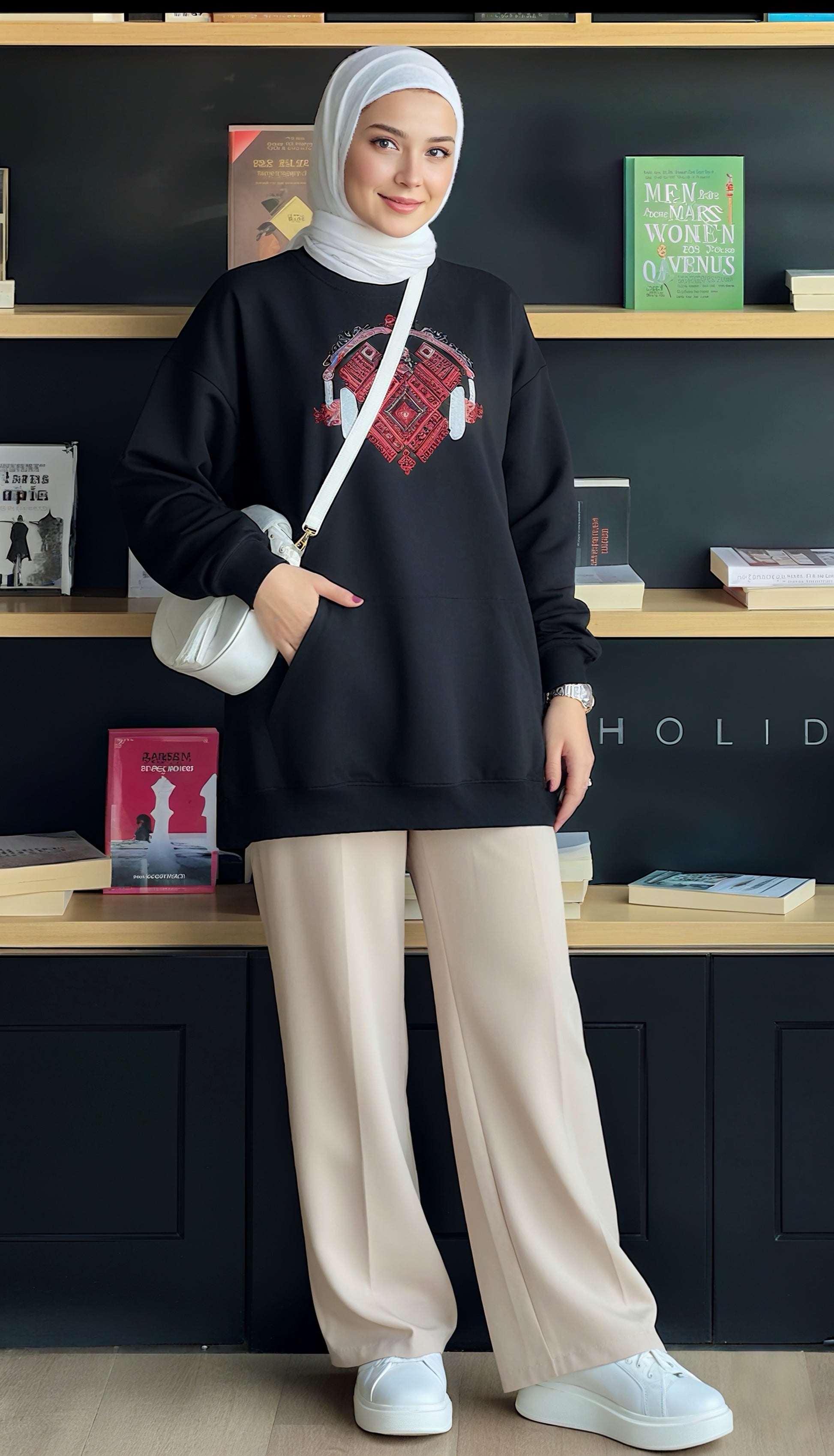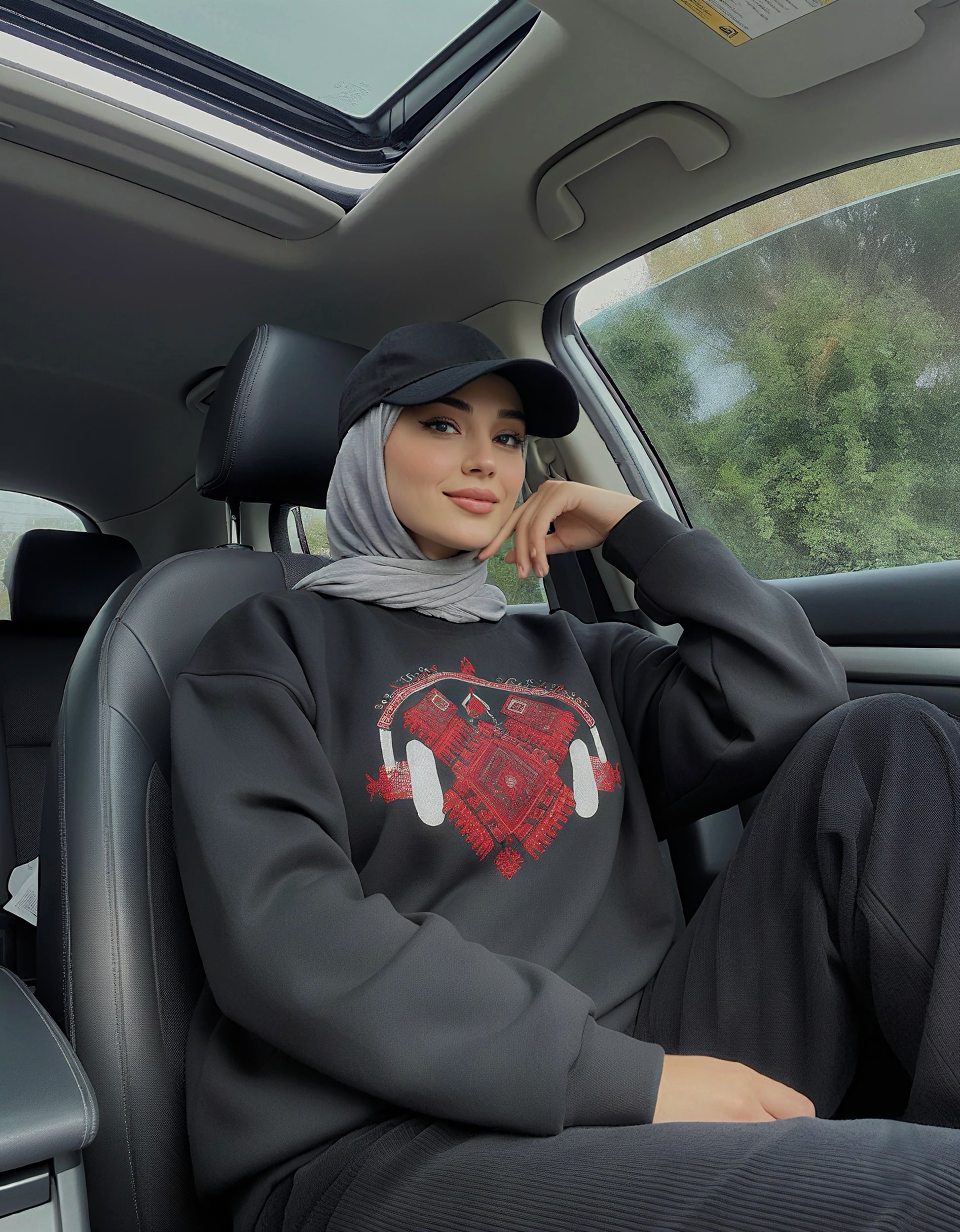 A stylish sweatshirt featuring authentic Siwa-inspired embroidery that blends heritage with a modern touch, perfect for Ramadan and beyond.