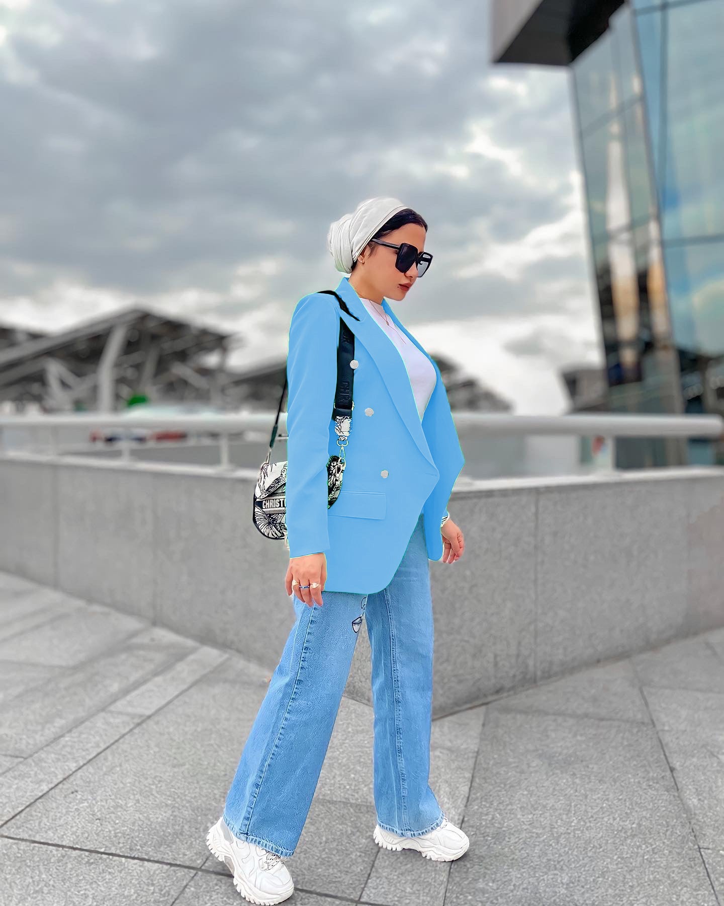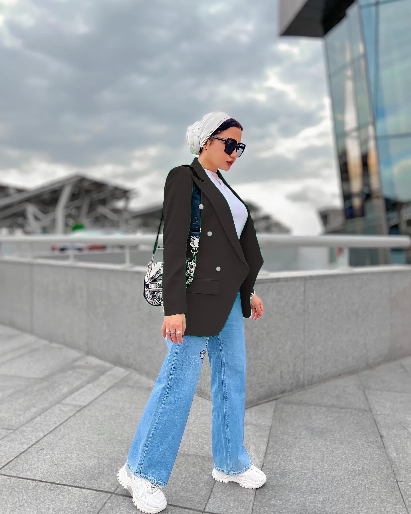 سترة كلاسيكية خالدة بقصّة حادة ومفصلة. تتميز بستة أزرار أمامية وأربعة أزرار للأكمام وطول 75 سم وتصميم ياقة كلاسيكي. يضيف الإغلاق المتقاطع لمسة من الأناقة، مما يجعلها قطعة أساسية مثالية للإطلالات الرسمية وغير الرسمية الأنيقة!