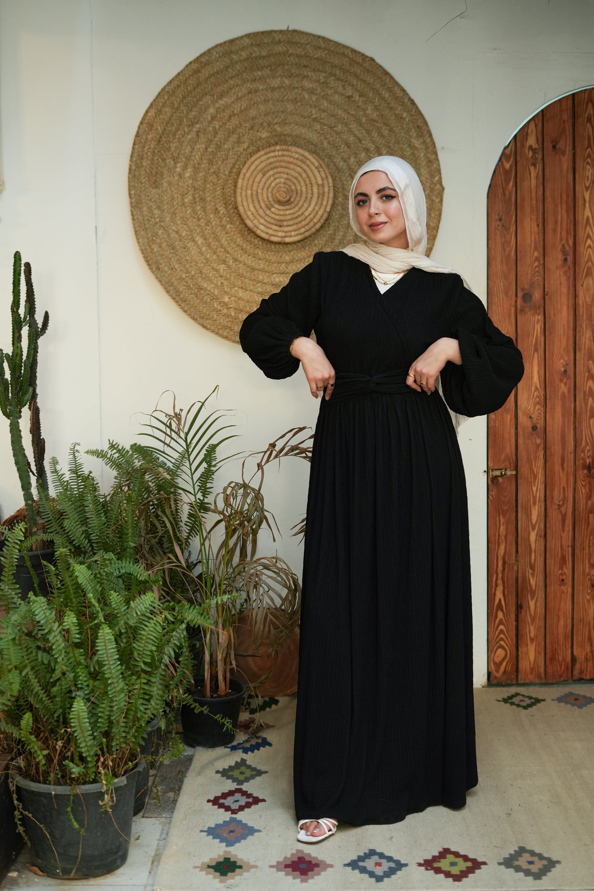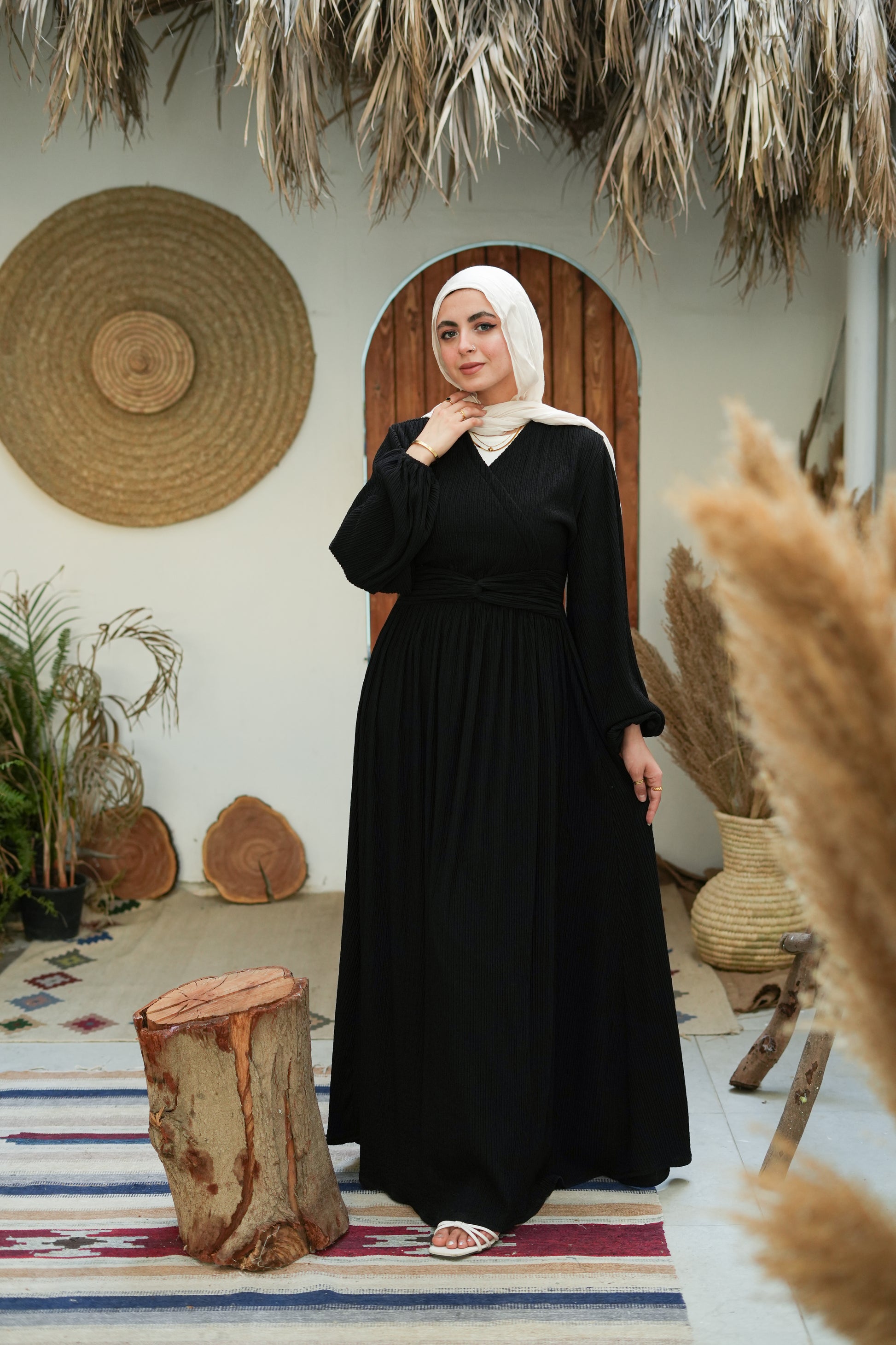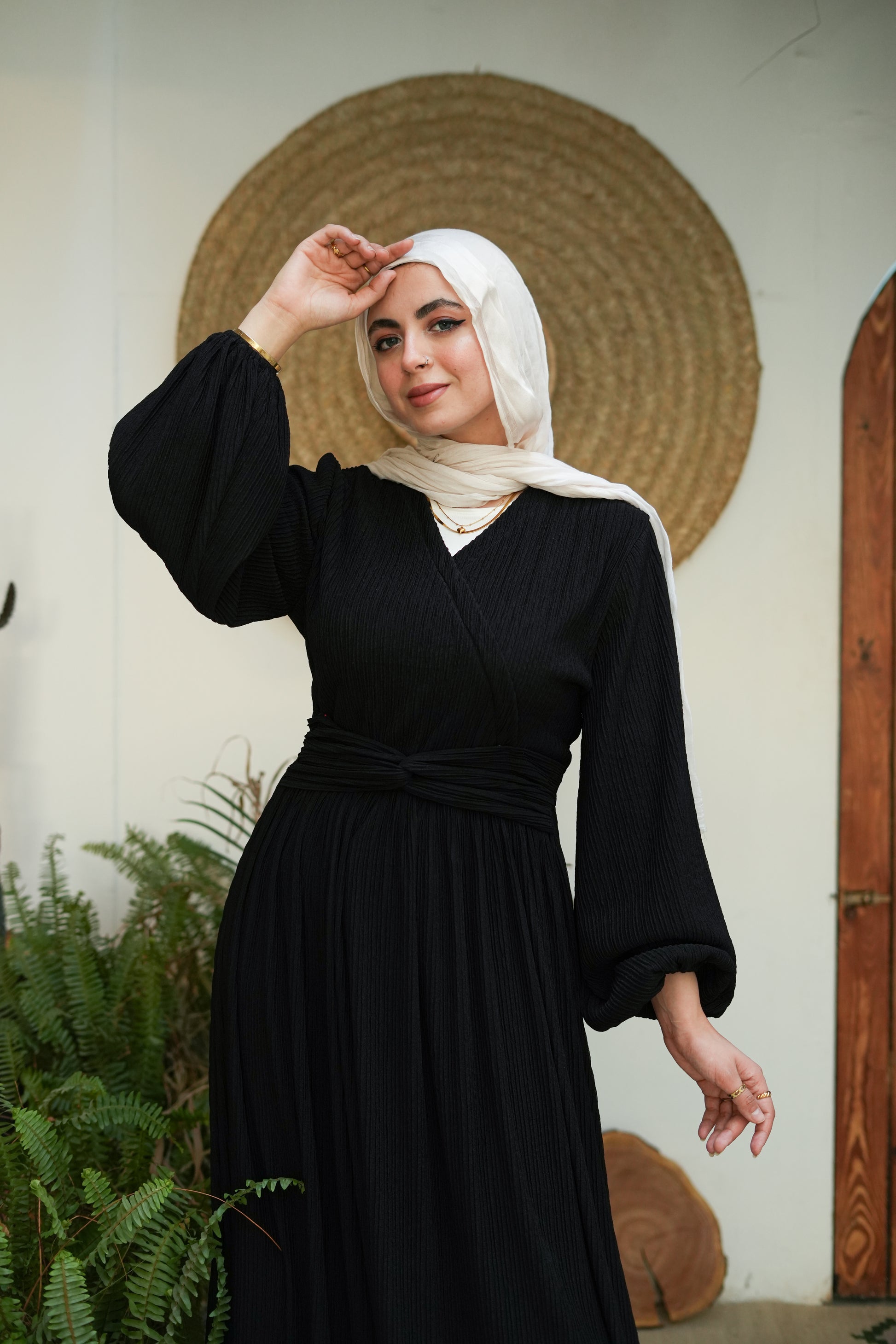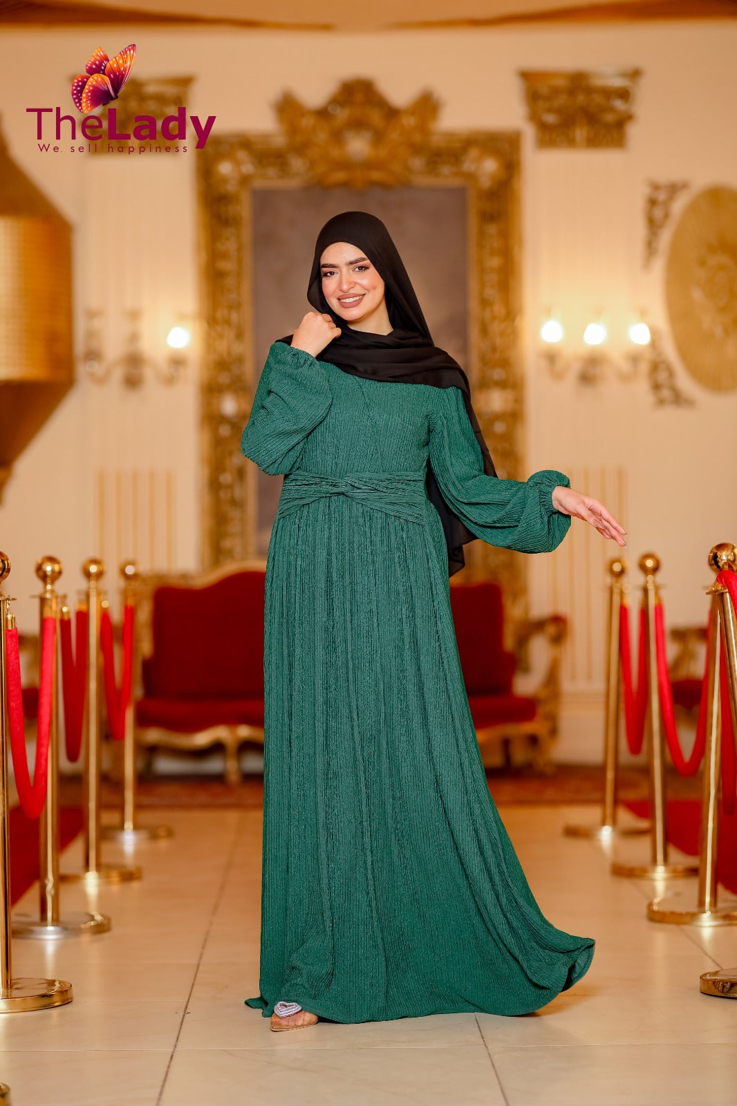 احصلي على إطلالة جريئة مع فستان Emerald Charm المصنوع من قماش محكم النقش يضفي عمقًا وأناقة. تتميز هذه القطعة المذهلة بصدر مريح ومناسب مع حزام على شكل حرف V يبرز خصرك بشكل جميل. تكمل التنورة المنسدلة الواسعة المظهر بأناقة لا مثيل لها، وهي مثالية لأي يوم أنيق أو تجمع مسائي ساحر.
