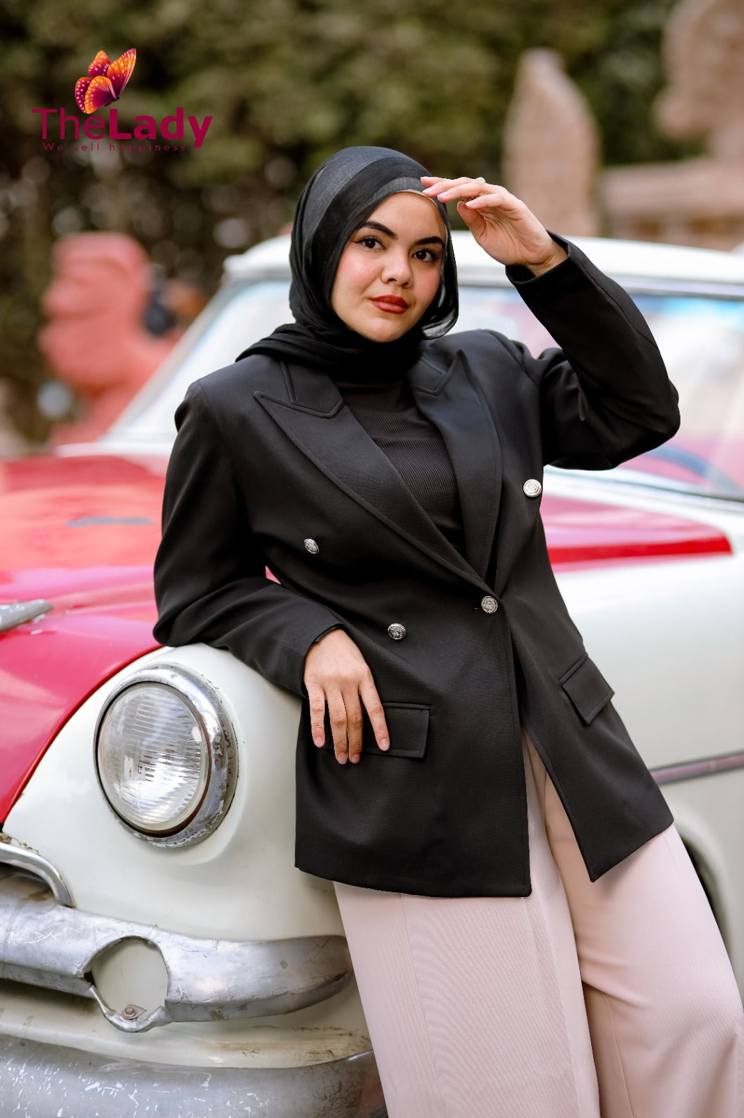 سترة أنيقة كبيرة الحجم مصممة لتمنحك أناقة لا مثيل لها. تتميز بأزرار ذهبية لافتة للنظر تضيف لمسة من الفخامة، هذه القطعة متعددة الاستخدامات مثالية للإطلالات غير الرسمية والرسمية. يمكنك ارتداؤها مع بنطلون أو فستان لإطلالة قوية لا تتأثر بمرور الزمن.