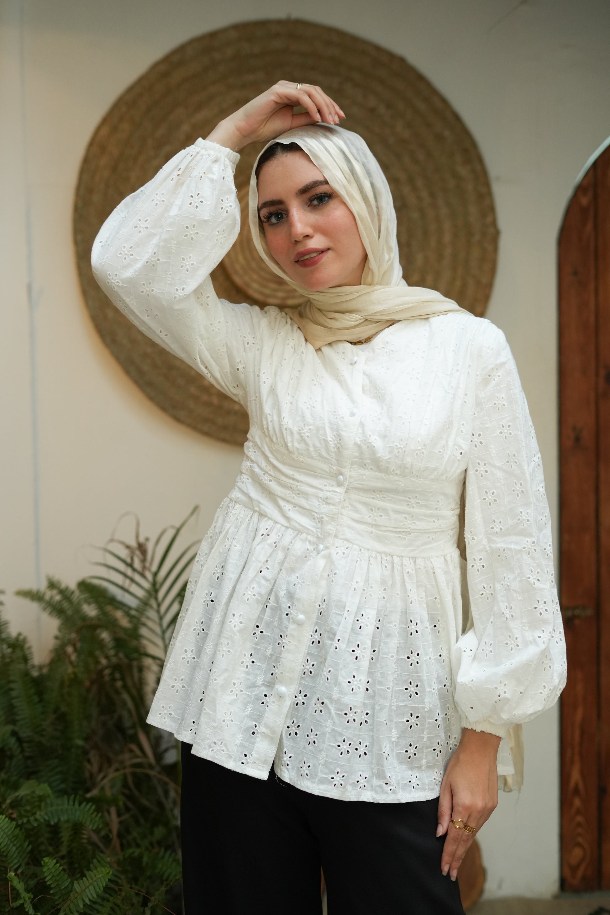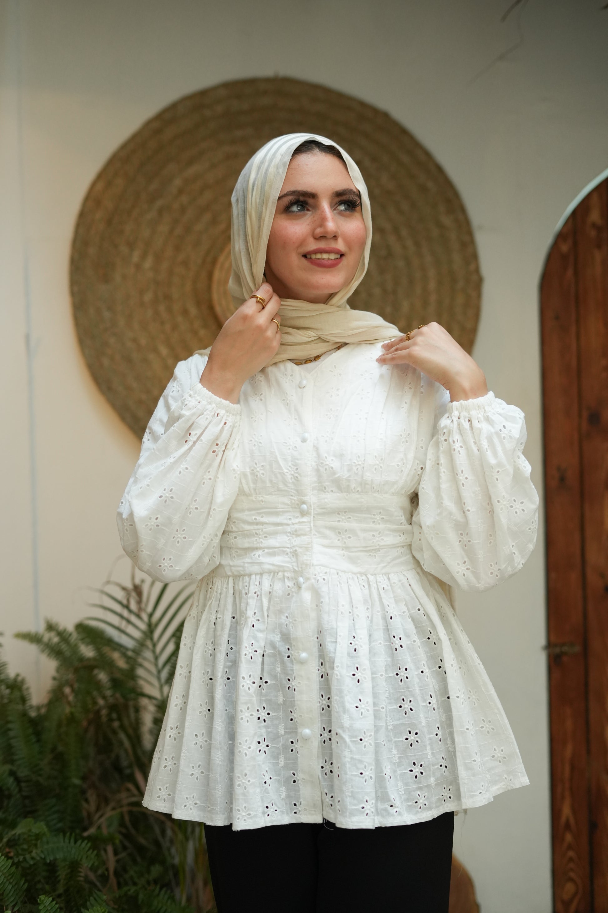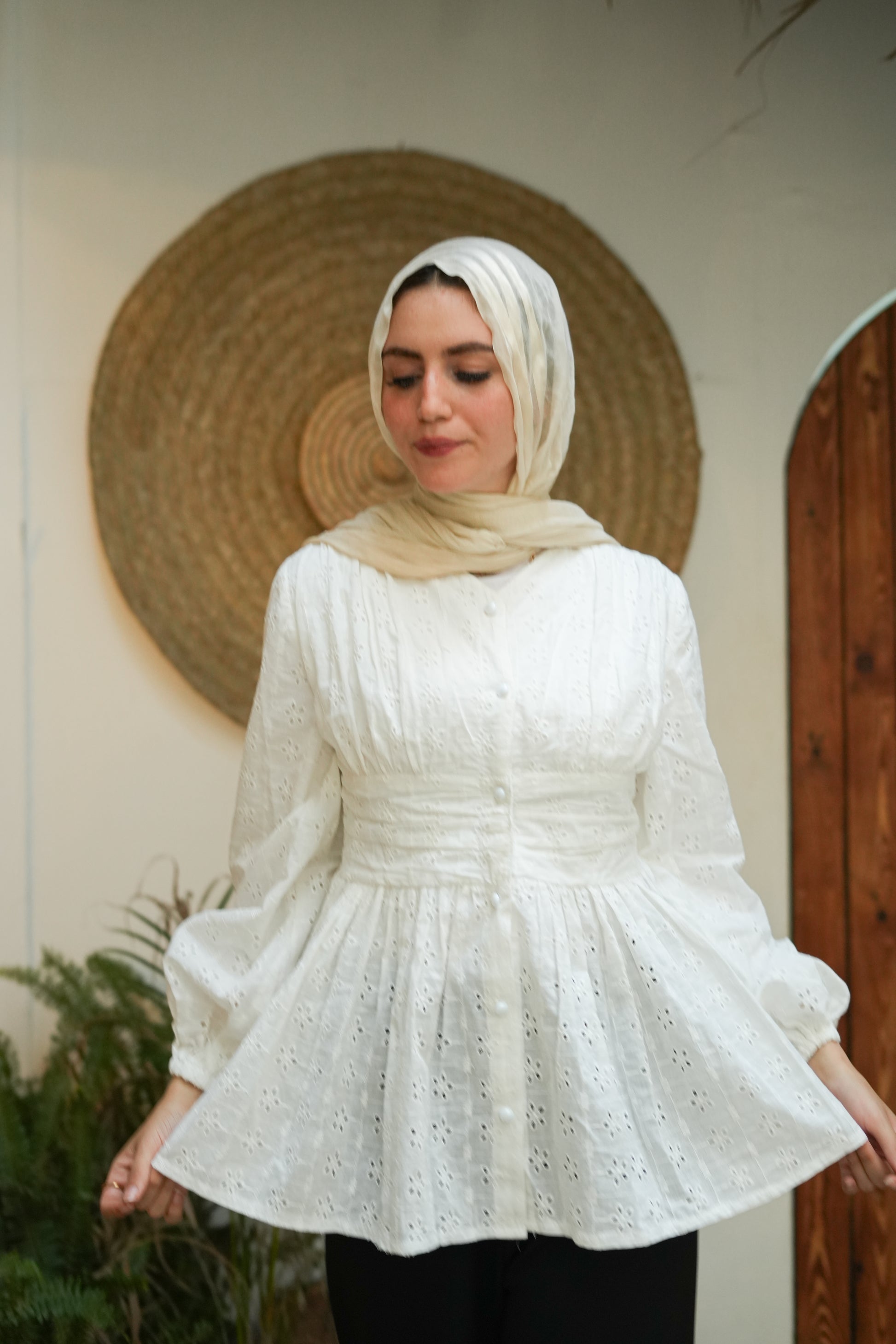 بلوزة شيك بكشكشة وزراير لولي – هتديك لمسة أنوثة ورُقي في كل إطلالة! مصممة بقصة كلوش مريحة وواسعة، بتحدد تحت الصدر عشان تبرز شكل الجسم بطريقة ناعمة وجذابة. الزراير اللولي بتضيف لمسة فخامة، تخليها مناسبة للخروجات الصباحية أو المناسبات. تنسيقها سهل مع بنطلون واسع أو جيب عشان تبقي أنيقة بكل بساطة!
