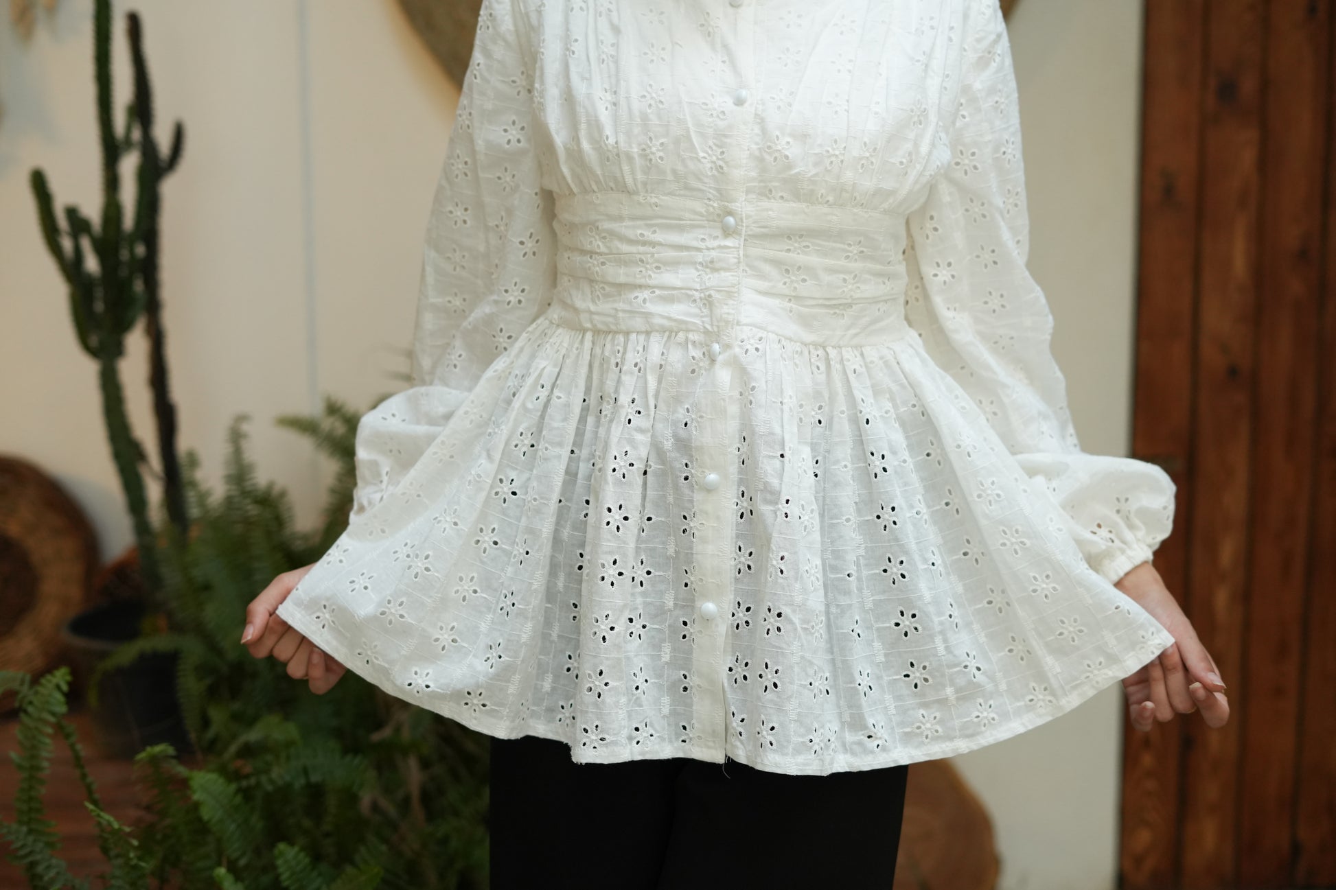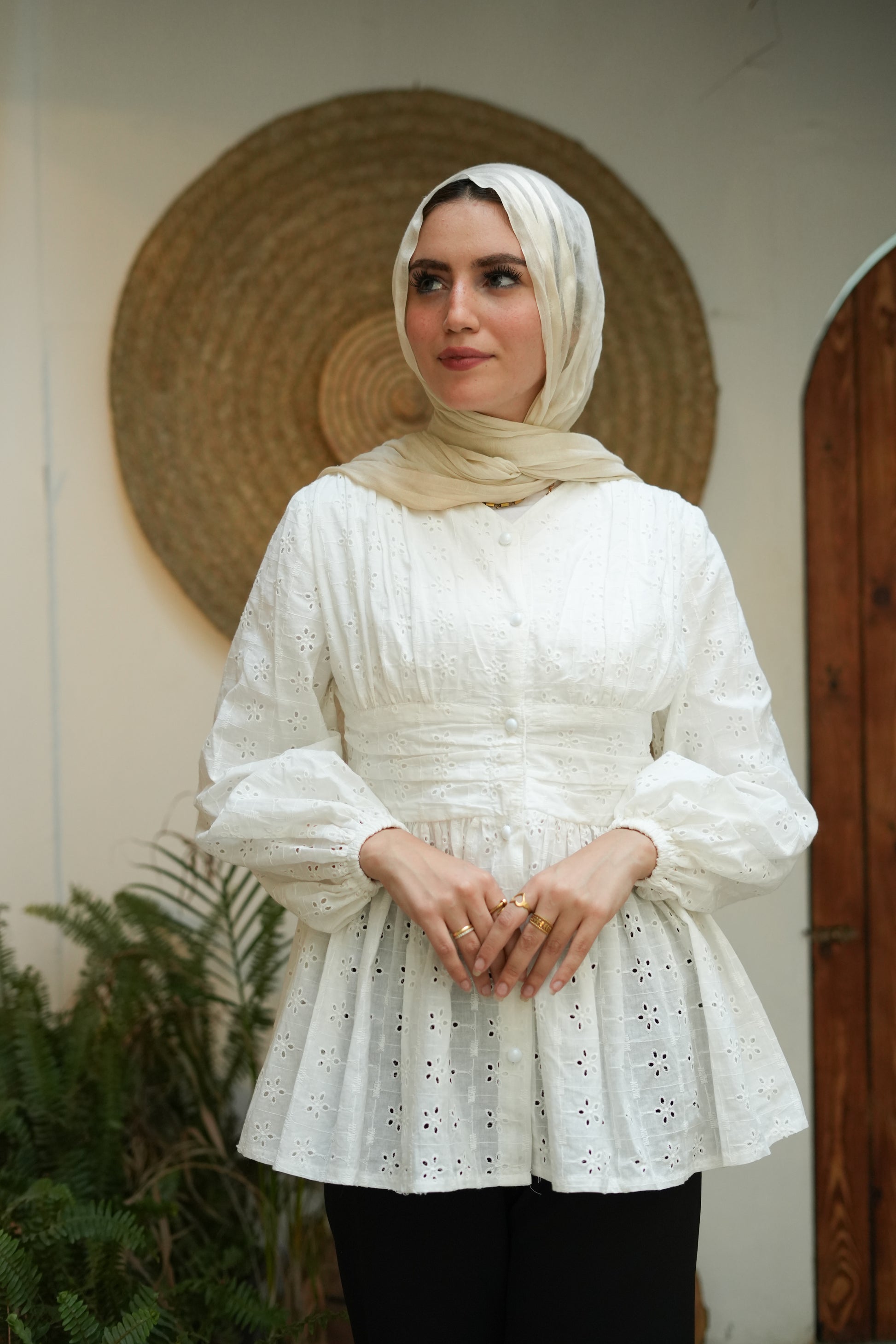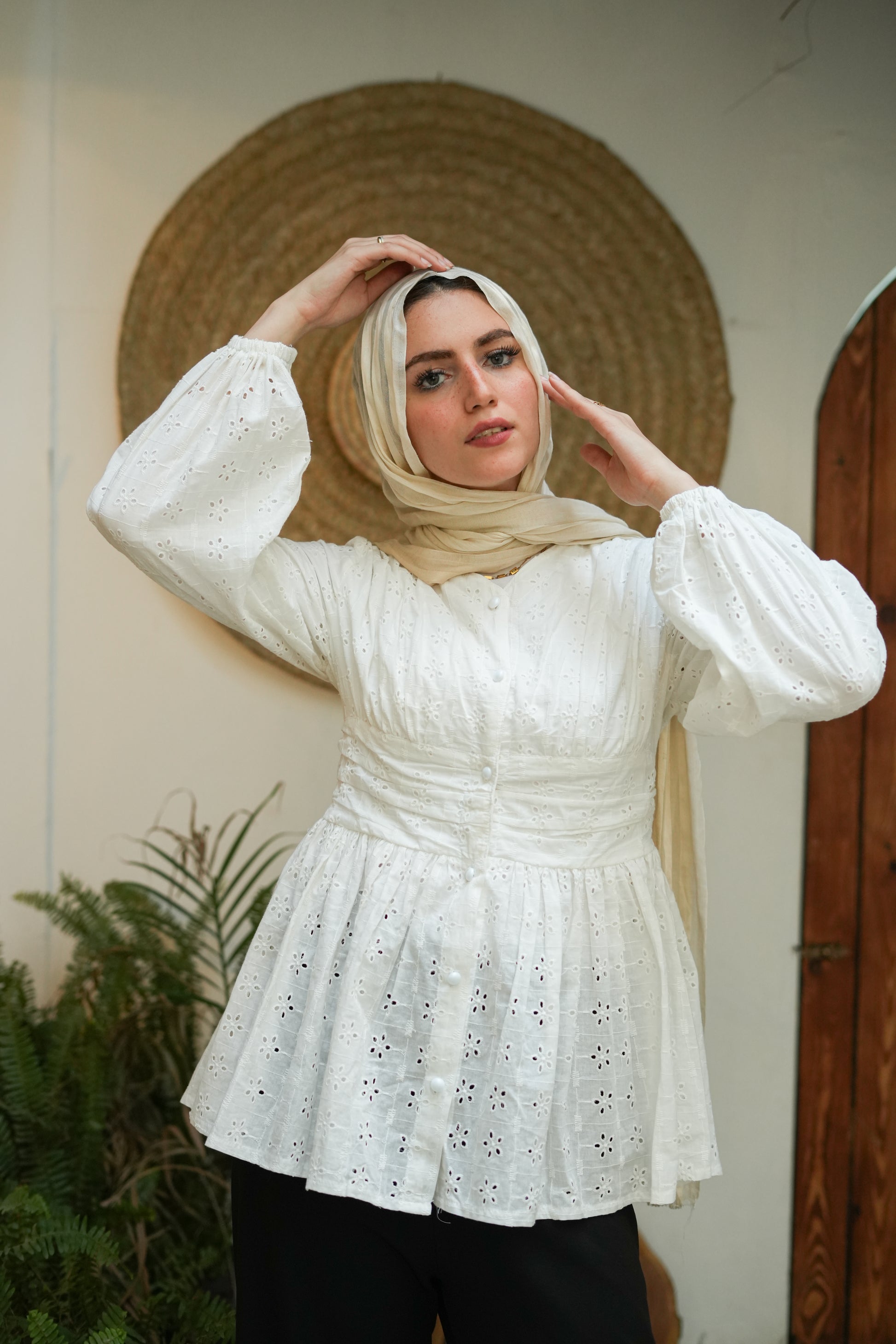 بلوزة شيك بكشكشة وزراير لولي – هتديك لمسة أنوثة ورُقي في كل إطلالة! مصممة بقصة كلوش مريحة وواسعة، بتحدد تحت الصدر عشان تبرز شكل الجسم بطريقة ناعمة وجذابة. الزراير اللولي بتضيف لمسة فخامة، تخليها مناسبة للخروجات الصباحية أو المناسبات. تنسيقها سهل مع بنطلون واسع أو جيب عشان تبقي أنيقة بكل بساطة!