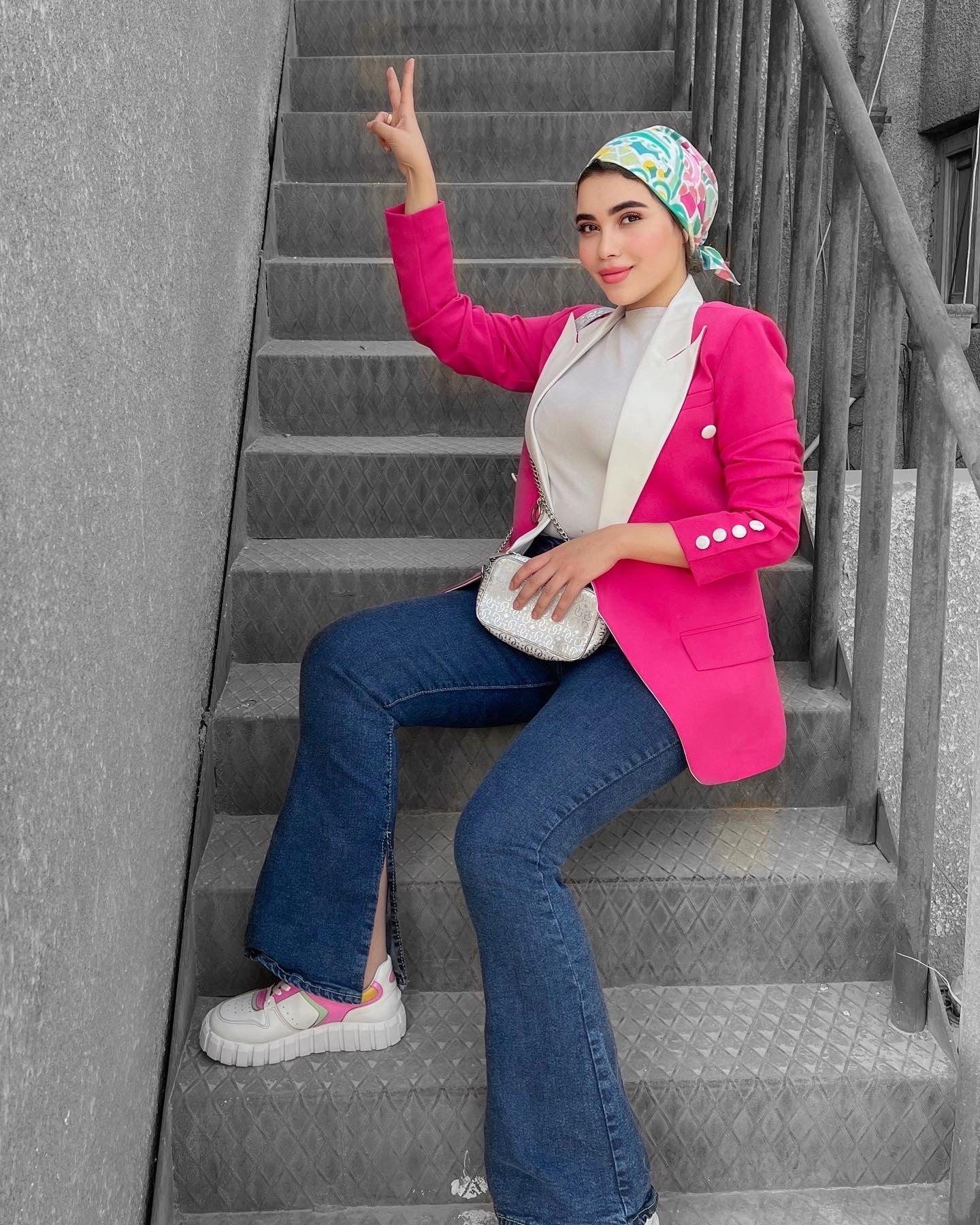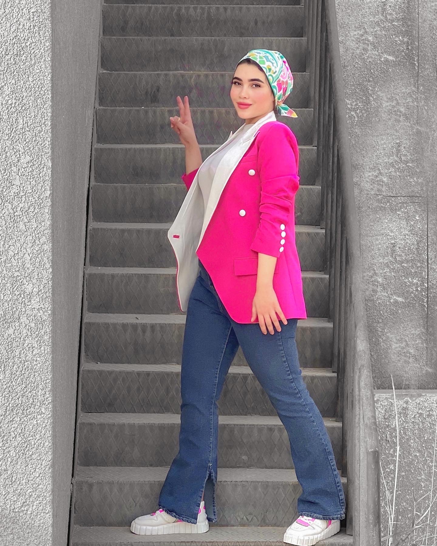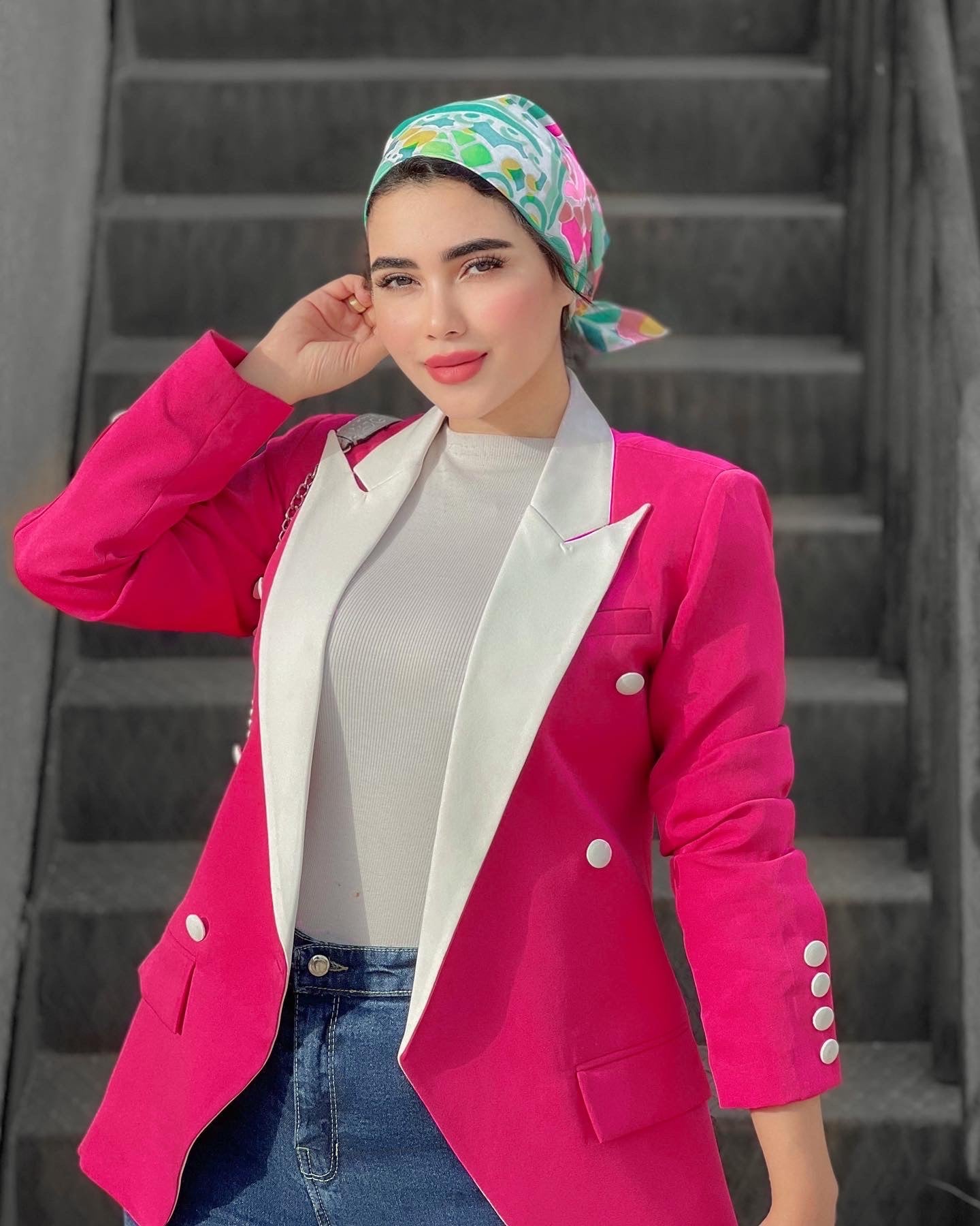سترة أنيقة بفتحة على شكل حرف V تتميز بطية صدر كلاسيكية بيضاء وأزرار بيضاء متناسقة لإطلالة أنيقة وعصرية بطول 75 سم. مثالية لكل من المناسبات المهنية والنزهات غير الرسمية.